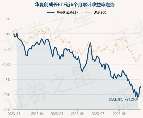 8月31日,华夏创成长ETF最新单位净值为0.472元,累计净值为1.7173元,较前一交易日下跌0.74%。历史数据显示该基金近1个月下跌5.41%,近3个月下跌10.33%,近6个月下跌17.97%,近1年下跌26.35%。该基金近6个月的累计收益率走势如下图: