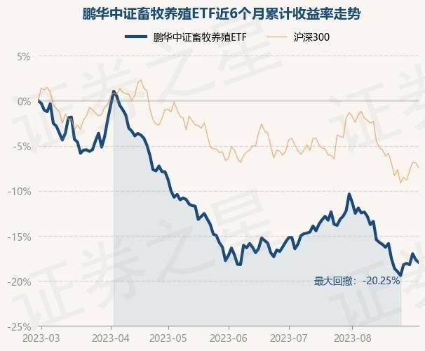 8月31日,鹏华中证畜牧养殖ETF最新单位净值为0.674元,累计净值为0.674元,较前一交易日下跌0.38%。历史数据显示该基金近1个月下跌8.47%,近3个月下跌0.27%,近6个月下跌17.96%,近1年下跌22.95%。该基金近6个月的累计收益率走势如下图: