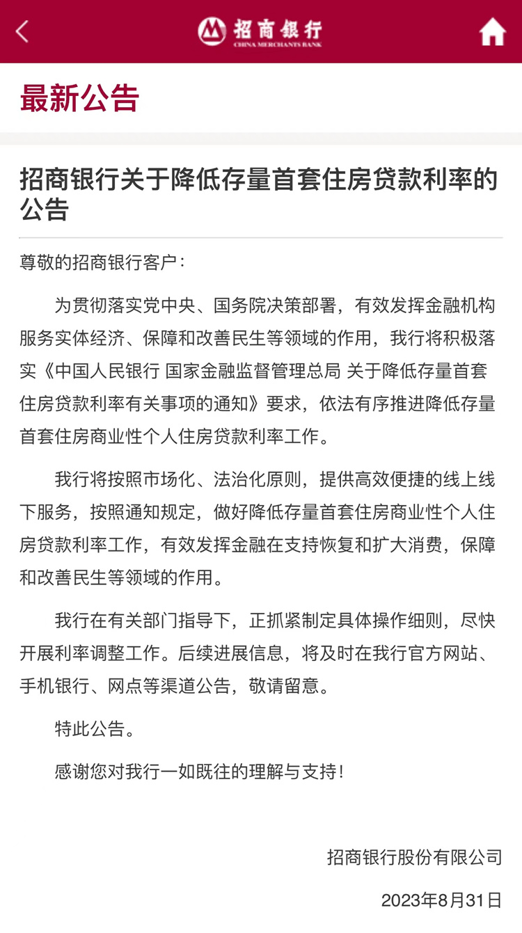 其他银行虽暂未发布相关公告,但在近期上市银行密集召开的中期业绩发布会中,存量住房贷款利率调整也是各方热议的重点话题,多家银行高管也对此作出了回应。
