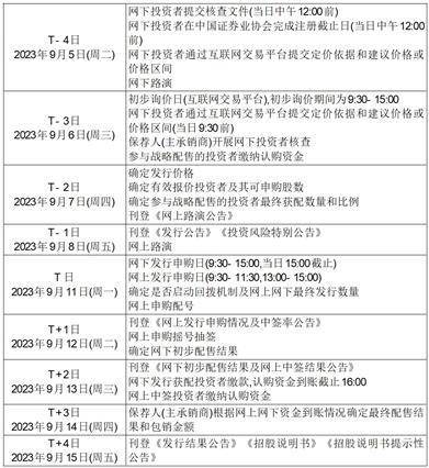 发行人和保荐人(主承销商)拟于2023年9月1日(T-6日)至2023年9月5日(T-4日)向符合要求的网下投资者进行网下推介,路演推介内容不超出《招股意向书》及其他已公开信息范围,不对股票二级市场交易价格作出预测。推介的具体安排如下: