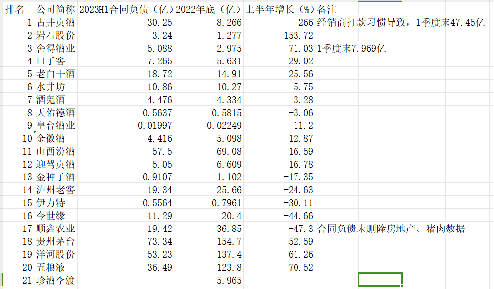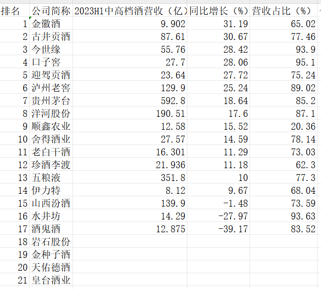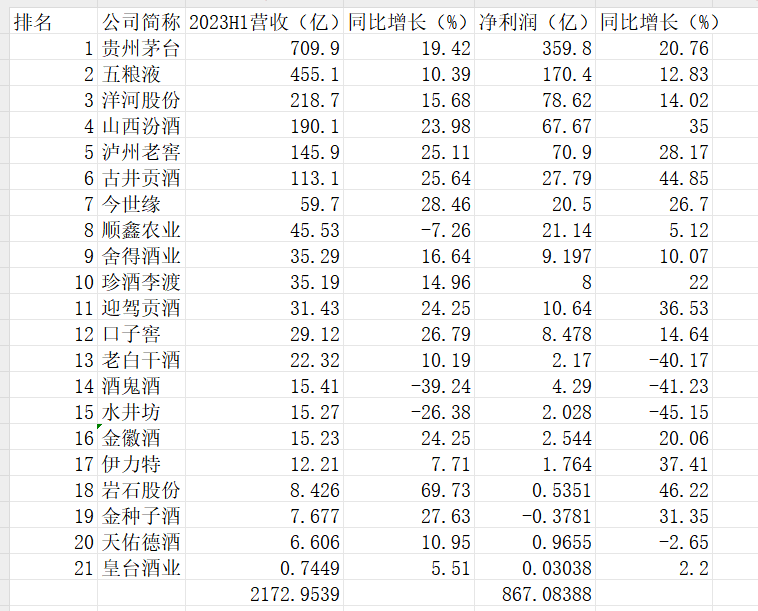 截至8月31日,21家白酒上市公司(包括港股白酒上市公司珍酒李渡,06979.HK)2023年上半年业绩全部公布完毕。