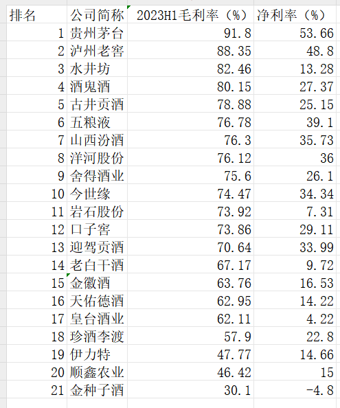 02 4家白酒毛利率超过80%,上海贵酒毛利率73.92%净利率仅7.31%