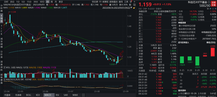 截至9:32,科创芯片ETF华安(588290)开盘强势,现已涨1.13%,成交额持续扩大,市场交投活跃。