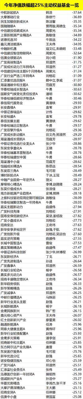 此外,今年基金净值跌幅大于25%的基金中,多位布局新能源、光伏等领域。