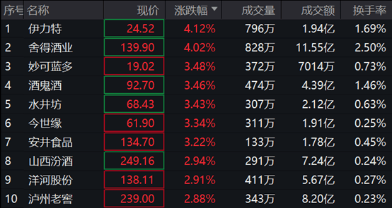 消息面上,截至8月31日,A股124家食品饮料上市公司2023年半年报已全部出炉。124家公司上半年合计实现营收5345.95亿元,同比增长9.5%;合计实现净利润1125.75亿元,同比增长14.92%。