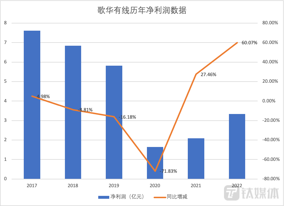 歌华有线历年净利润数据