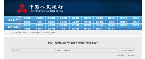 为提升金融机构外汇资金运用能力,中国人民银行决定,自2023年9月15日起,下调金融机构外汇存款准备金率2个百分点,即外汇存款准备金率由现行的6%下调至4%。