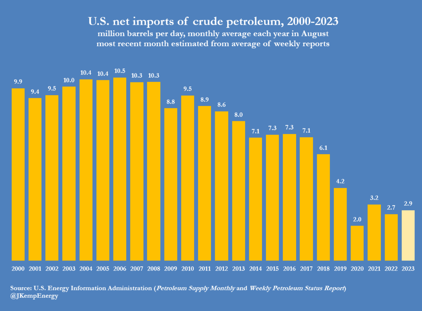净进口量较2022年同月的270万桶/日略有增加,但低于2021年的320万桶/日和2019年的420万桶/日。
