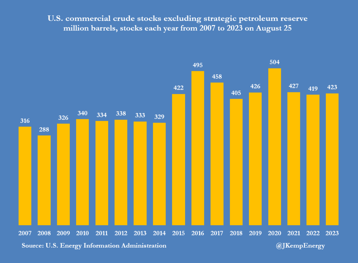 美国原油库存持续减少通常被解读为全球市场出现短缺的迹象,导致现货价格和价差上升。