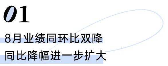 8月,逾7成百强企业单月业绩同比降低,近半数百强房企同环比双降。