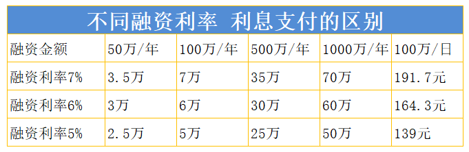 来稍微计算一下:融资利息=融资金额×融资利率(年利率)×实际融资天数/360。以融资利率5%融10万为例:1天的融资利息=100000×5%×1/360=13.89元。基本上融资是随借随还的,用一天算一天的利息,只要资金不过夜,也不收取利息,尤其适合我们做T+0交易的投资者。