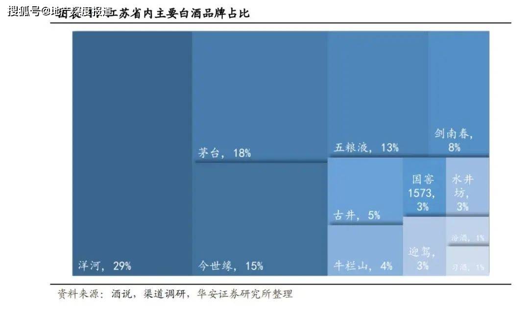 分地区来看,洋河股份作为江苏省的龙头酒企,其在江苏省内市占率甚至超过了贵州茅台。