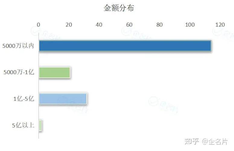从轮次分布来看,投资多集中于天使轮、A轮等早期投资,投资金额大多在5000万元以下。融资5亿以上的事件有2起,远程汽车A轮融资6亿美元,万向信托战略融资15.73亿人民币。
