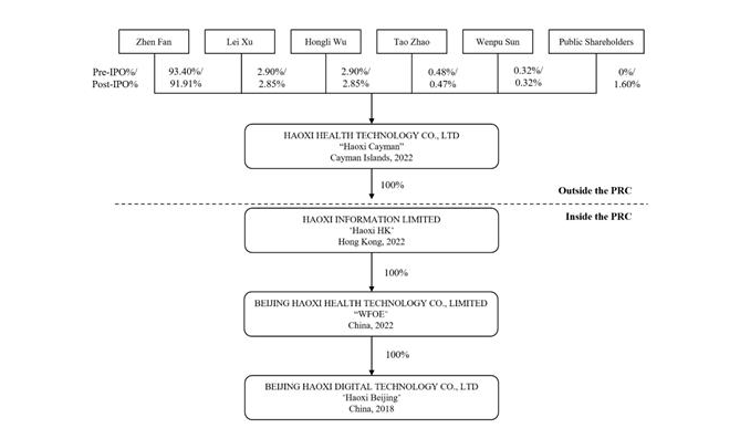 招股书显示,浩希的公司架构如上。