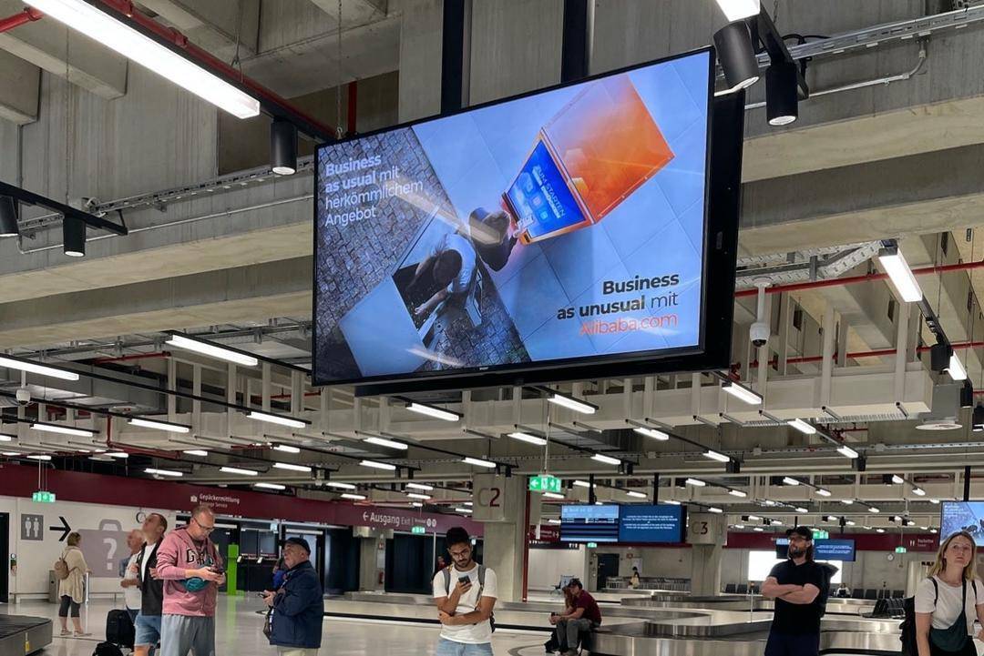 柏林的机场显示屏里显示着阿里国际站的9月采购节