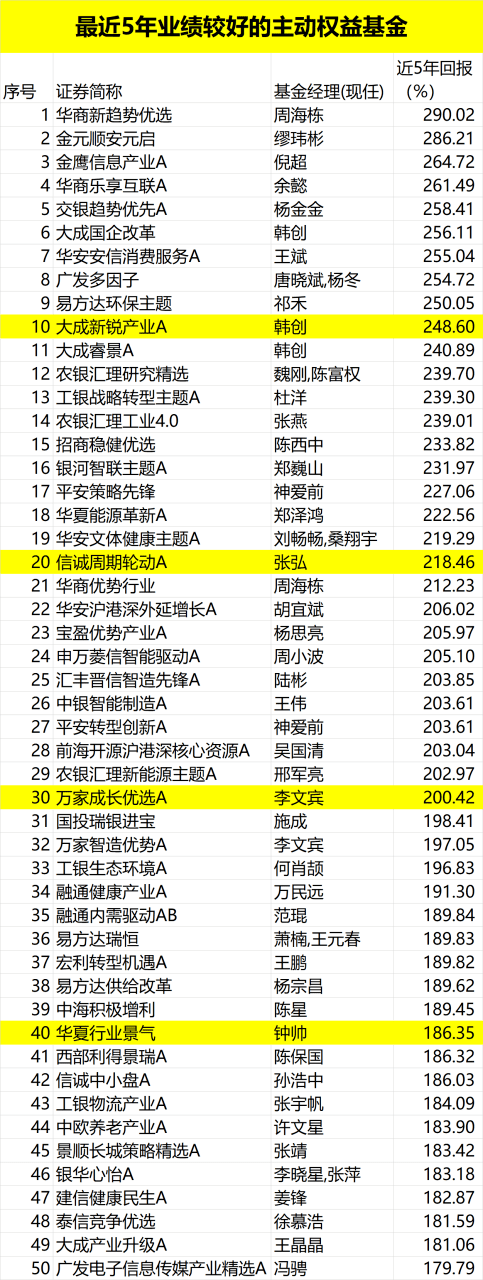 最近五年业绩:最牛涨近300%