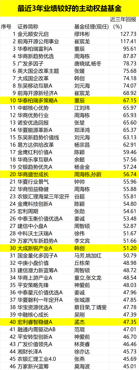 从三年维度的中期业绩来看,一些主动权益基金仍有所表现。