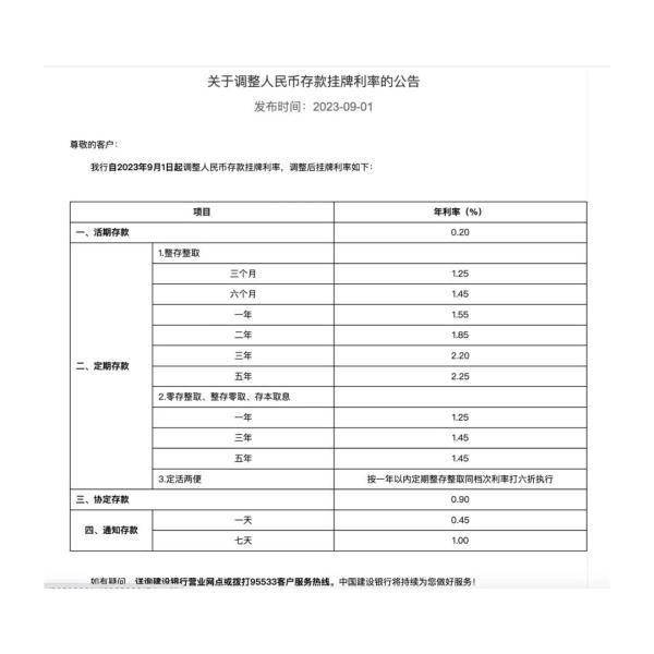 以光大银行为例,1年期利率下调10个基点至1.75%,2年期利率下调20个基点降至2.1%,3年期、5年期利率均下调25个基点,分别降至2.25%、2.3%。