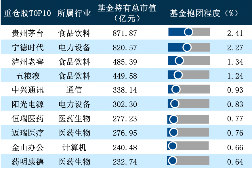 主动权益基金前十大重仓股票分析,数据来源:天相投顾