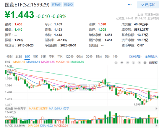 热门ETF方面,跟踪中证医药指数的医药ETF(159929)回调跌0.69%,成交额超5873万,跌破5日均线,仍处于10日均线上方。