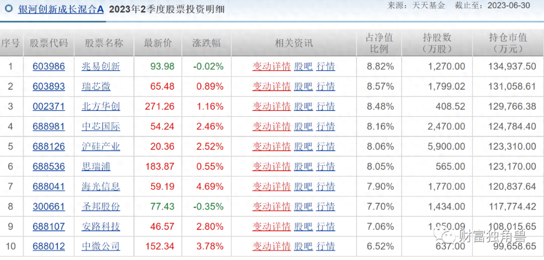 郑巍山在一季报中表示,二季度仍然会延续科技赛道的投资,关注新技术应用带来的新需求,继续注重产业基本面研究。但二季度该基金回吐前期收益,分别跌10.82%、10.96%。截至2023年2季度前十大重仓股又出现调整,兆易创新、瑞芯微、北方华创、中芯国际、沪硅产业、思瑞浦、海光信息、圣邦股份、安路科技、中微公司。