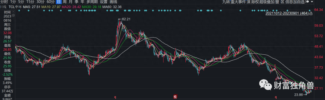 笔者翻看银河和美生活混合A各季度前十大重仓股发现,自2022年1季度该基金持有TCL中环70万股,2季度持有79万股,3季度持有123万股,4季度持有110万股;2023年1季度持有TCL中环115万股,2季度持有该股125万股。TCL中环股价自2022年3月15日至2023年9月1日,该股股价跌幅44.10%。