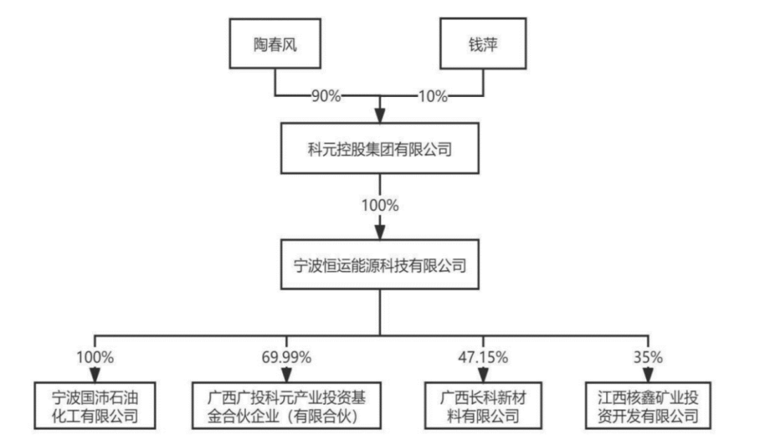 其中,广投科元为一支私募基金,执行合伙人为广西国富创新股权投资基金管理有限公司,持有广投科元0.02%份额,而恒运能源持有广投科元69.99%份额,广西广投工业高质量发展基金合伙企业(有限合伙)(简称高质量发展基金)持有剩余29.99%份额。