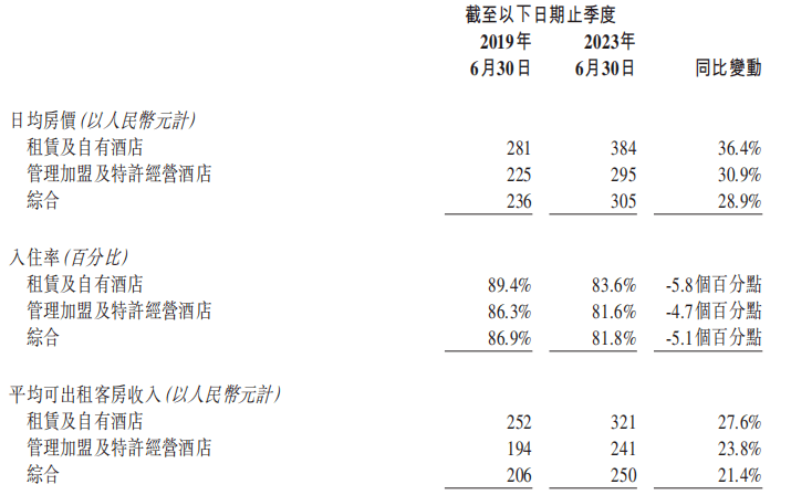 上述情况意味着,在入住率不及疫情前的情况下,华住硬生生靠着日均房价上涨拉高了平均可出租客房的收入水平,继而助推了业绩。华住首席执行官金辉也曾直言,一、二季度的业绩复苏主要是受到日均房价增长推动。