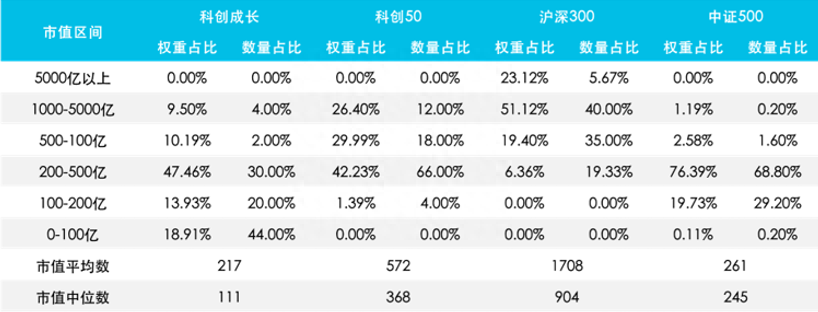 从指数的市值分布来看,上证科创板成长指数成份股平均市值为217亿,200亿元以下的成份股数量占比达到60%以上。