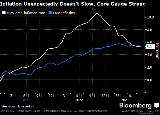 周四公布的欧元区通胀数据显示,核心通胀率8月从5.5%放缓至5.3%,符合预期。这导致投资者押注利率本月将维持不变。