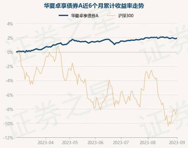 9月1日,华夏卓享债券A最新单位净值为0.9968元,累计净值为0.9968元,较前一交易日上涨0.08%。历史数据显示该基金近1个月下跌0.05%,近3个月上涨0.52%,近6个月上涨1.96%,近1年下跌0.14%。该基金近6个月的累计收益率走势如下图: