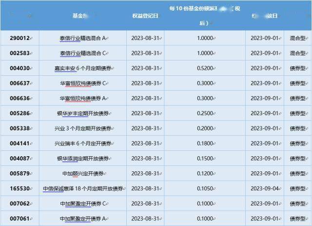 四、8月31日基金分红一览