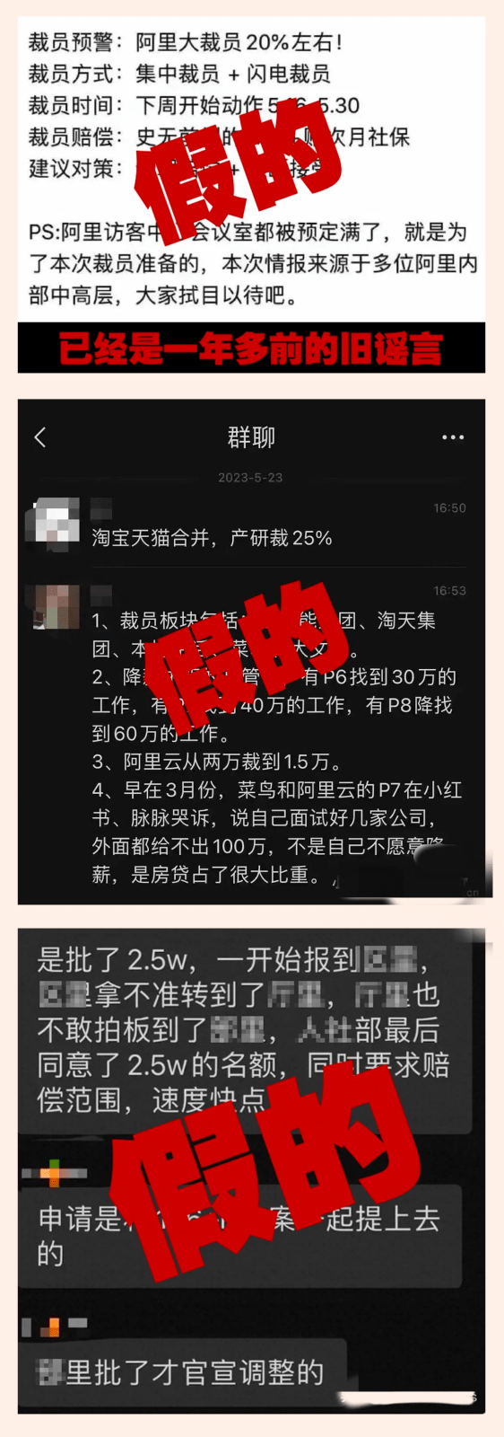 5月25日晚间,阿里通过官方公众号发布一篇文章,对近期网络上流传的与淘宝天猫、阿里云、菜鸟、本地生活等多个业务裁员的消息进行回应称,“谣言就是谣言”。