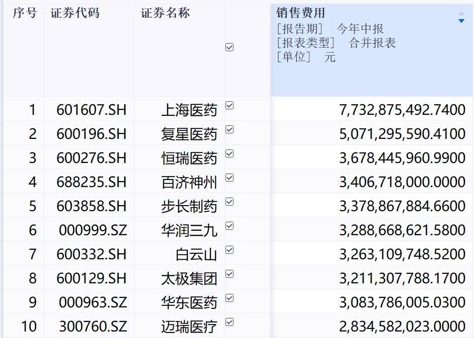 2022年报显示,白云山销售费用高达58.75亿元,其中职工薪酬、销售服务费、广告宣传费位列前三,分别占比50.62%、17.37%、16.35%。据同花顺iFind金融数据端显示,白云山销售费用为32.63亿元,在医药生物行业中位列第七。医疗反腐高压下,白云山任重而道远。