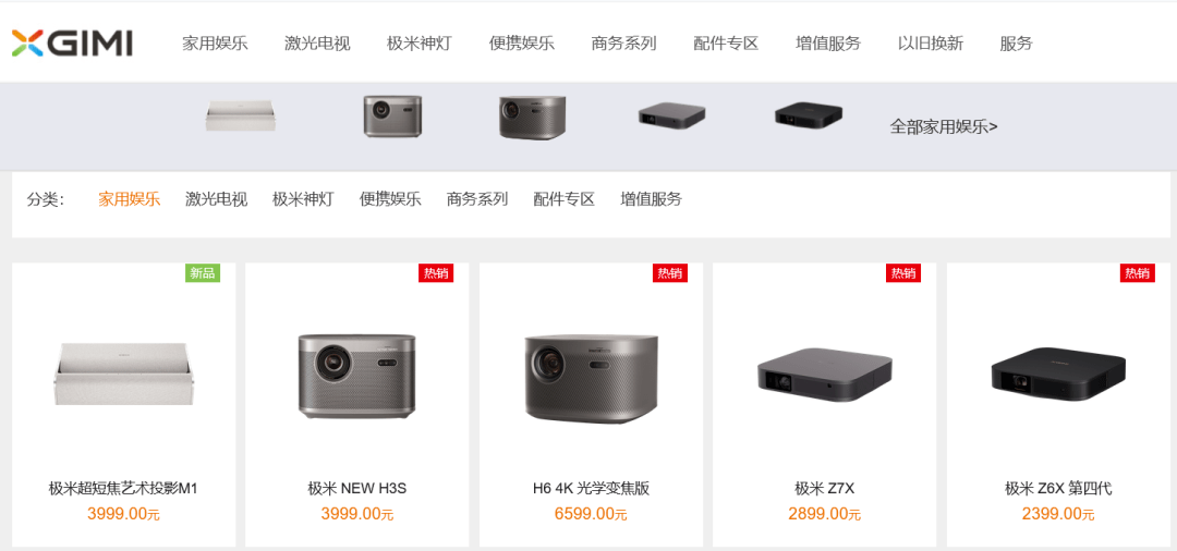 (极米产品布局 图源:极米科技公司官网)