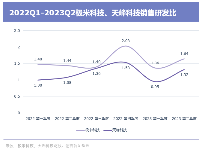 原因是,从的态度来看,其更重营销而轻研发:2020H1-2023年H1,累计的销售费用投入为6亿左右,占累计营收的比约为10%;同期的销售费用为23亿左右,占累计营收比约为14%。