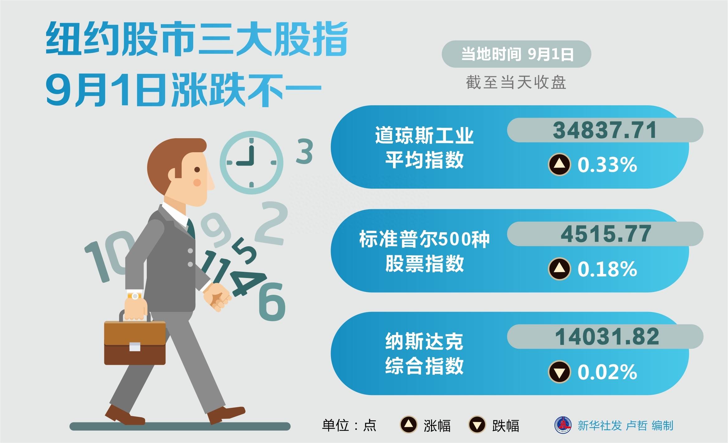 原标题:(图表)[财经·行情]纽约股市三大股指9月1日涨跌不一