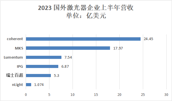 【注:由于coherent、通快、Lumentum财年计算是从每年7月1日到次年6月30日,故这里的数据统计是2023年1月1日到6月30日三、四季度财报,由于通快在年度报未披露季度营收情况,故不在统计之内。】
