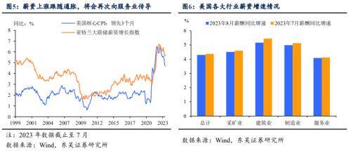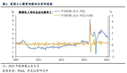 薪资增速动能放缓,但持续性仍待确认。 工资水平是美联储密切关注并视为是否会增加通胀压力的信号 。倘若薪资动能持续放缓,这将减弱未来通胀压力:8月平均薪资同比上涨4.3%,环比增速较7月的0.4%放缓至0.2%。但值得关注的是,8月比7月多了两个工作日,因此本月下滑的幅度有可能被夸大,薪资增速动能是否真的放缓需要进一步确认(图4-6)。