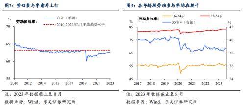 大量“再入者”重返就业市场带领失业率回升。 随着过剩储蓄的消耗,更多的人有意愿重返劳动力市场 :劳动力参与率升至62.8%,为2020年2月疫情开始以来的最高水平。不仅大龄劳动力(55岁+)开始重返职场,其他各年龄段的参与率也在持续改善(图2-3)。