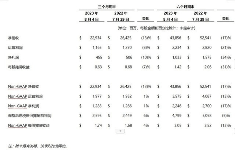 戴尔科技集团公布的2024财年第二财季业绩报告显示,第二财季营收为229亿美元,同比下降13%。