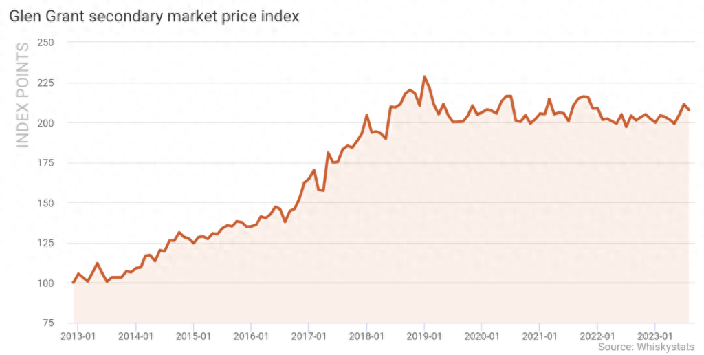 Whiskystats公布的数据也证明了这一点。比如,格兰冠旗下的收藏级威士忌就承受住了市场的动荡,并表现出不错的潜力。