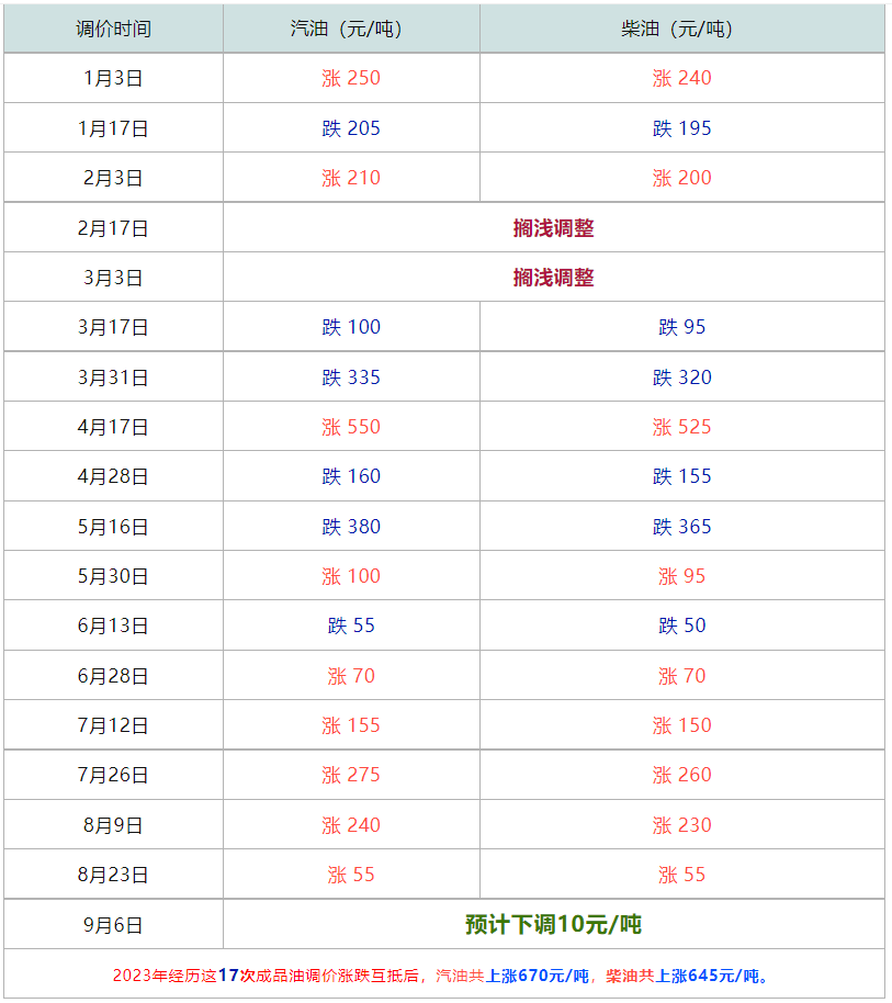 今年至今17次油价调整记录表