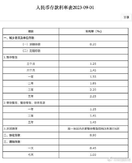 9月1日,中国银行宣布下调人民币定期存款利率,一年期、两年期、三年期和五年期人民币定期存款利率为1.55%、1.85%、2.20%、2.25%。