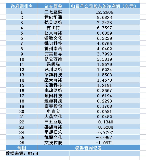 A股游戏公司半年报 制图:澎湃新闻记者 范佳来
