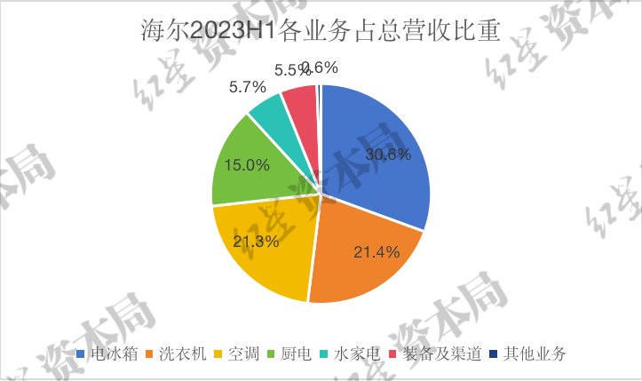 财报显示,今年上半年,格力的空调业务收入占总营收比为70.5%;美的各业务占比最大的也是空调,占总营收比为46.7%;海尔则是电冰箱业务,占总营收比为30.6%。
