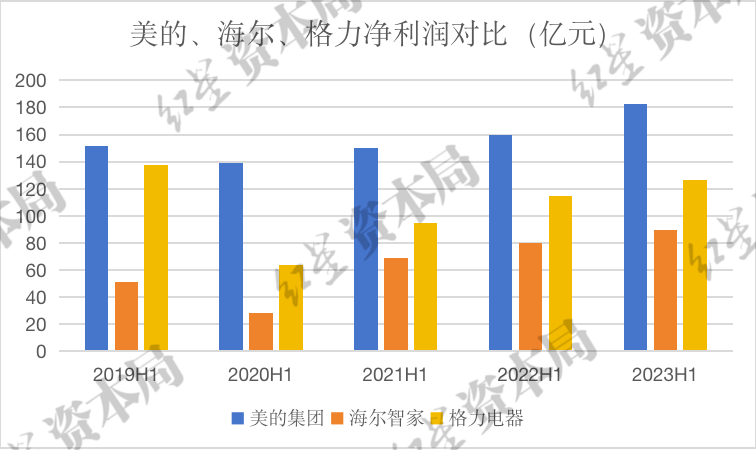 净利润来看,今年上半年,美的归母净利润182亿元,同比增长13.98%;海尔归母净利润89.6亿元,同比增长12.6%;格力归属于母公司的净利润126.73亿元,同比增长10.52%。