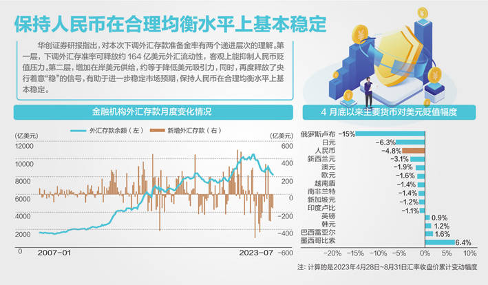周茂华称,央行通过调降外汇存款准备金率释放外汇流动性,有助于平衡外汇市场供求,稳定外汇市场预期。