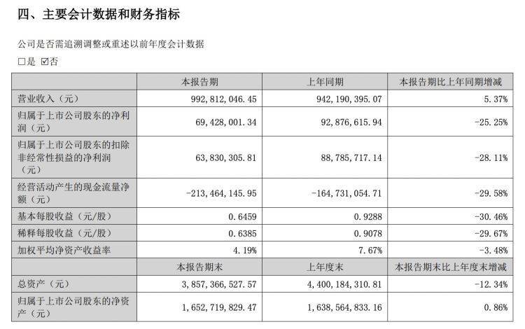 8月30日,翔丰华发布2023年半年报,上半年公司营业收入9.93亿元,同比增长5.37%,归属于上市公司股东的净利润为6942.8万元,同比下降25.25%。