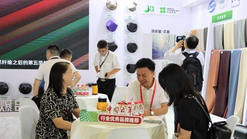此次展会中,兴业科技的与众不同的“环保皮”产品吸引海内外买家驻足,“环保皮”的生产工艺也让人耳目一新。